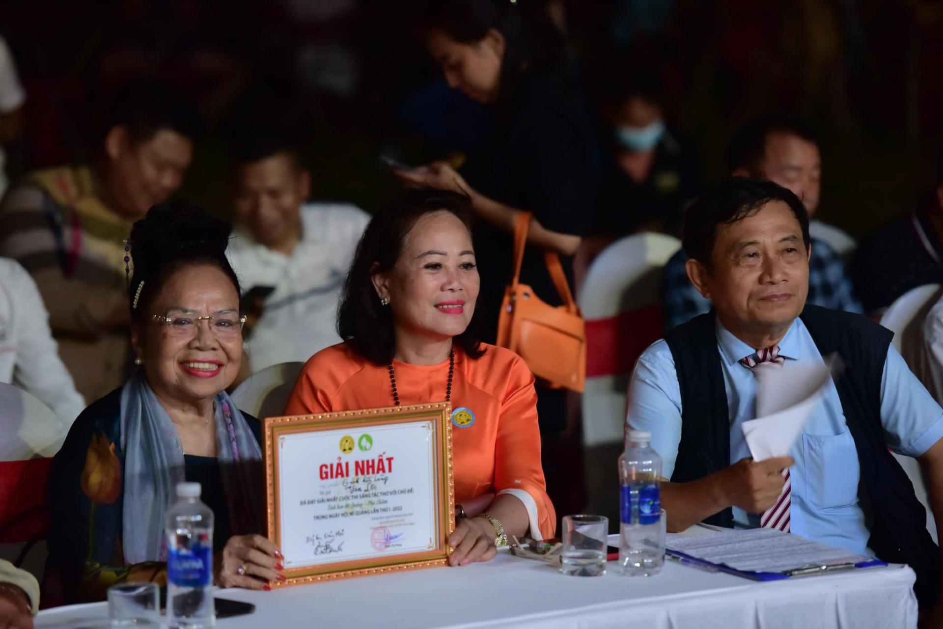 Nhà thơ Vạn Lộc (thứ 5 bên phải qua) rất vui khi nhận được giải Nhất cuộc thi sáng tác thơ lục bát với bài thơ "Gánh hồn làng đi"