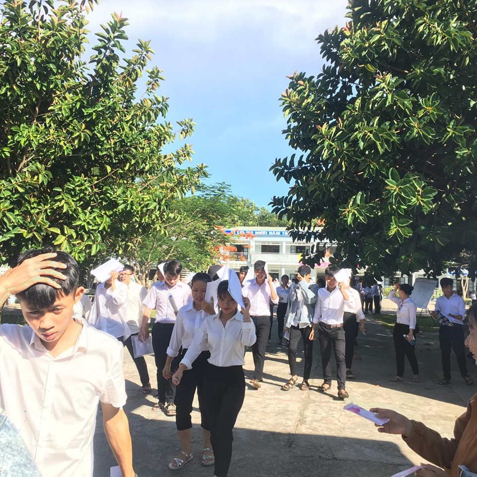 Trao đổi, động viên tinh thần các thí sinh sau môn thi đầu tiên