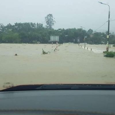 Nước dâng lai láng, chèo xuồng cứu sinh.