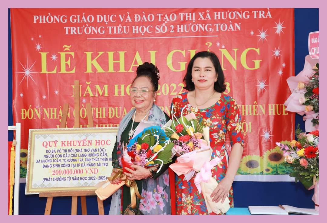 Người phụ nữ có tấm lòng bồ tát này luôn nghĩ về các cháu học sinh nghèo. Bà tặng 200 triệu đồng cho Hội khuyến học Trường THCS Phù Đổng, huyện Duy Xuyên; tặng hàng chục mũ bảo hiểm, dầu ăn và tiền cho học sinh xã Sơn Viên (Đại Lộc, Quảng Nam); tặng 200 triệu đồng cho Hội khuyến học xã Hương Cần, tỉnh Thừa Thiên – Huế và rất nhiều hoàn cảnh đặc biệt khó khăn khác đều được bà giúp đỡ.