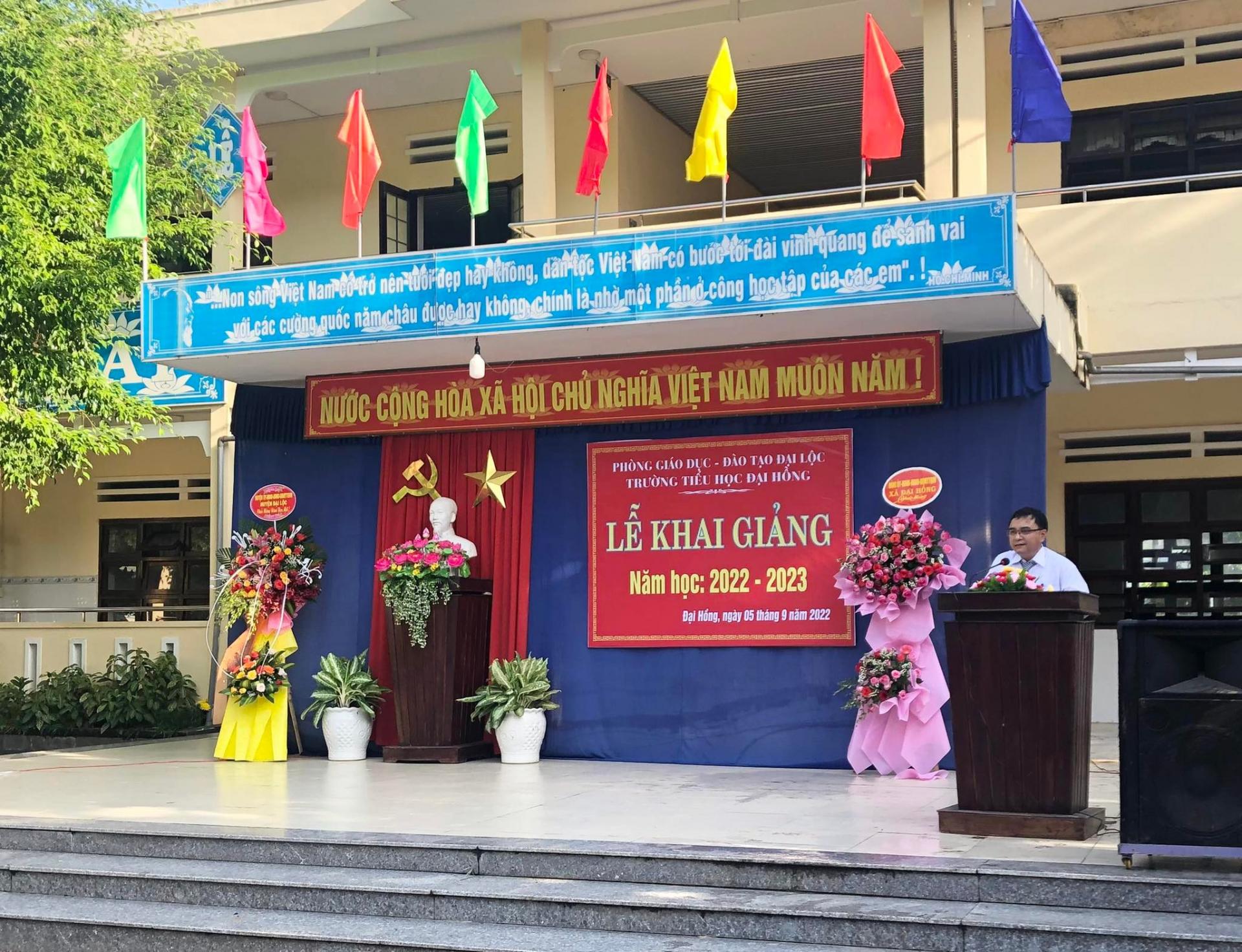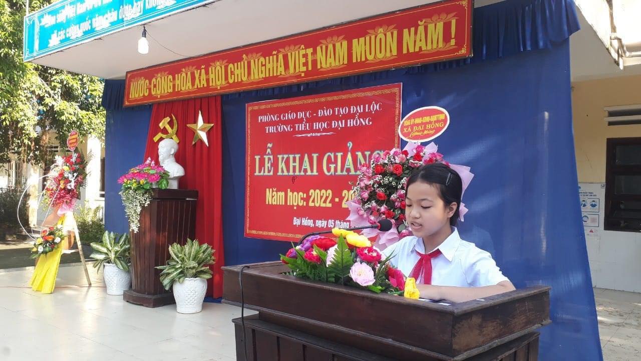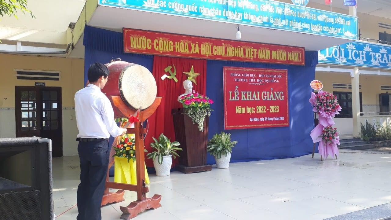 Năm học 2022-2023 là năm học tiếp tục thực hiện nghị quyết Đại hội Đảng lần thứ 13. Năm học tiếp tục thực hiện theo Chỉ thị 05-CT/TW của Bộ Chính trị khóa XII về “Đẩy mạnh học tập và làm theo tư tưởng, đạo đức, phong cách Hồ Chí Minh”; năm học ngành giáo dục xác định chủ đề “ Đoàn kết, sáng tạo, ra sức phấn đấu hoàn thành tốt các nhiệm vụ và mục tiêu đổi mới, củng cố và nâng cao chất lượng giáo dục và đào tạo”. Hoà chung khí thế thi đua sôi nổi lập thành tích chào mừng kỷ niệm 77 năm cách mạng tháng 8 và quốc khánh 2/9. Sáng nay ngày 5/9 Trường tiểu học Đại Hồng long trọng tổ chức lễ khai giảng năm học 2022-2023.
