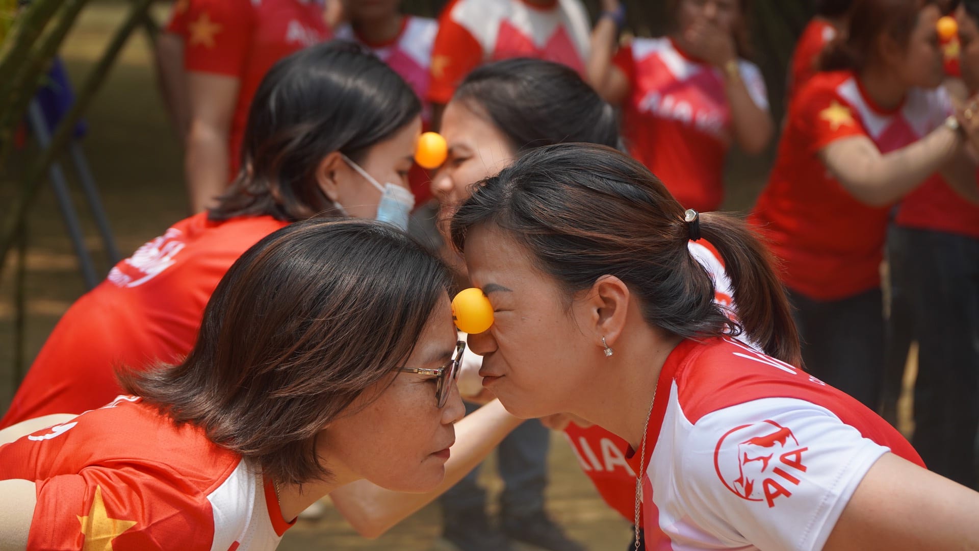 Dưới cái nắng rát bỏng cháy cả thịt da của Tháng Tư vừa mới sang Hè, ấy vậy mà các đội chơi vẫn chiến đấu hết công suốt. Nụ cười tươi lan tỏa nhẹ trên môi các cô cậu áo đỏ đầy nhiệt huyết.