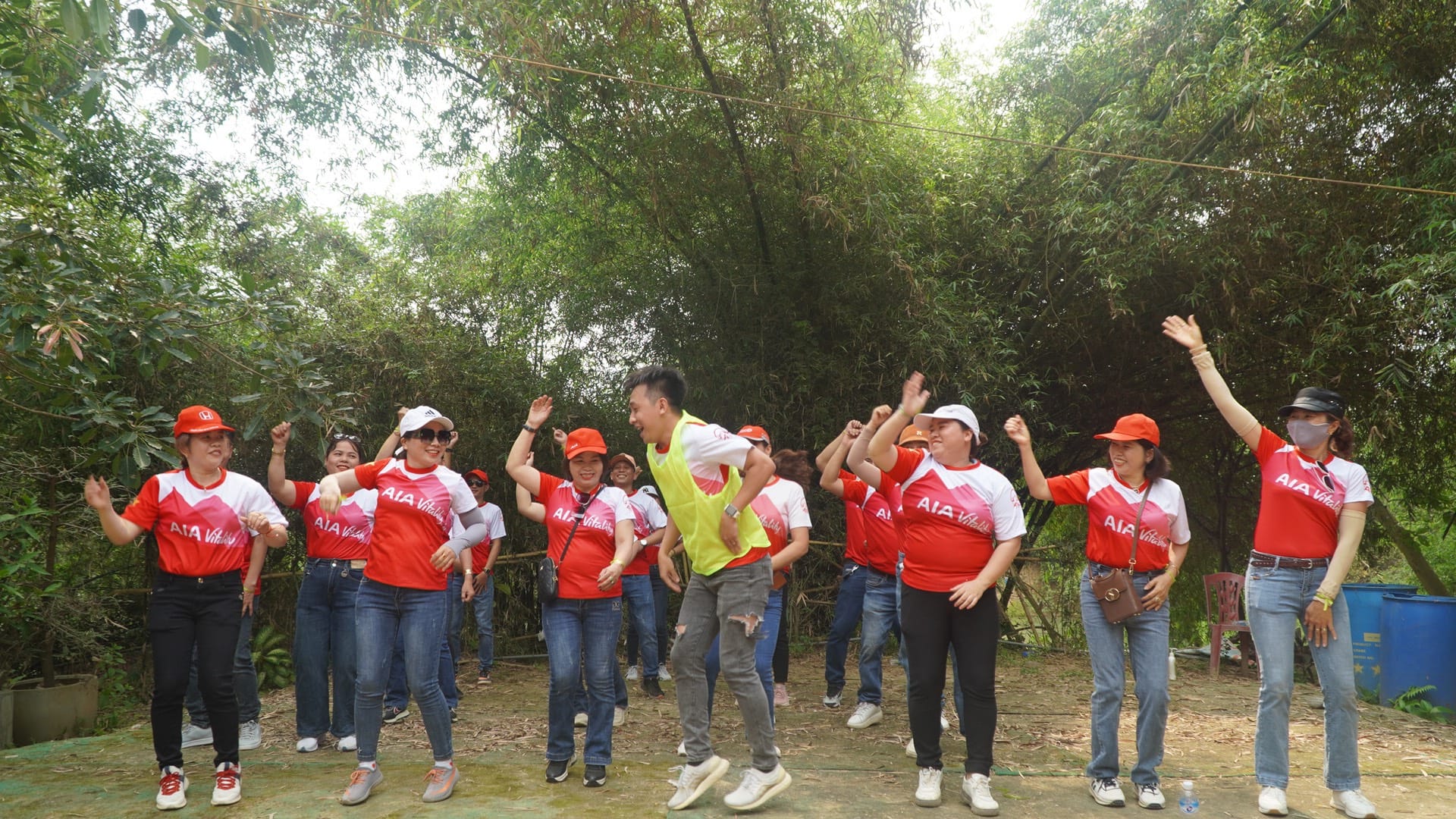 Khởi động chào buổi sáng dưới rừng cây rợp mát Vườn Trúc Bồ Bồ