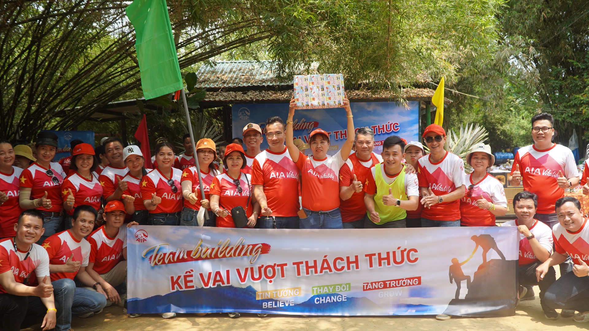 Thật vậy, một ngày trải nghiệm Team Building "KỀ VAI VƯỢT THÁCH THỨC" thật là vui, nhộn nhịp, sôi nổi, hóm hỉnh, hài hước, gây cấn, hấp dẫn với các trò chơi đầy kịch tính. Phải nói rằng Thầy Nguyễn Đăng Hữu đã sáng tạo và lên kịch bản chương trình rất chu đáo. Với giọng MC chuyên nghiệp dẫn xuyên suốt qua từng trò chơi và toàn bộ ekip hoạt động đội nhóm thật xuất sắc. Qua chuyến dã ngoại ngoài trời dành cho Cấp quản lý và MDRT diễn ra từ sáng đến chiều của VP AIA Quảng Nam- Đà Nẵng tại Vườn Trúc Bồ Bồ đã khẳng định được sức mạnh vô địch, sự "tin tưởng, thay đổi, tăng trưởng" của đội nhóm. Tinh thần đoàn kết, bền chặt, gắn bó, đưa các Team cùng bay cao- bay xa trong một tương lai cận kề.
