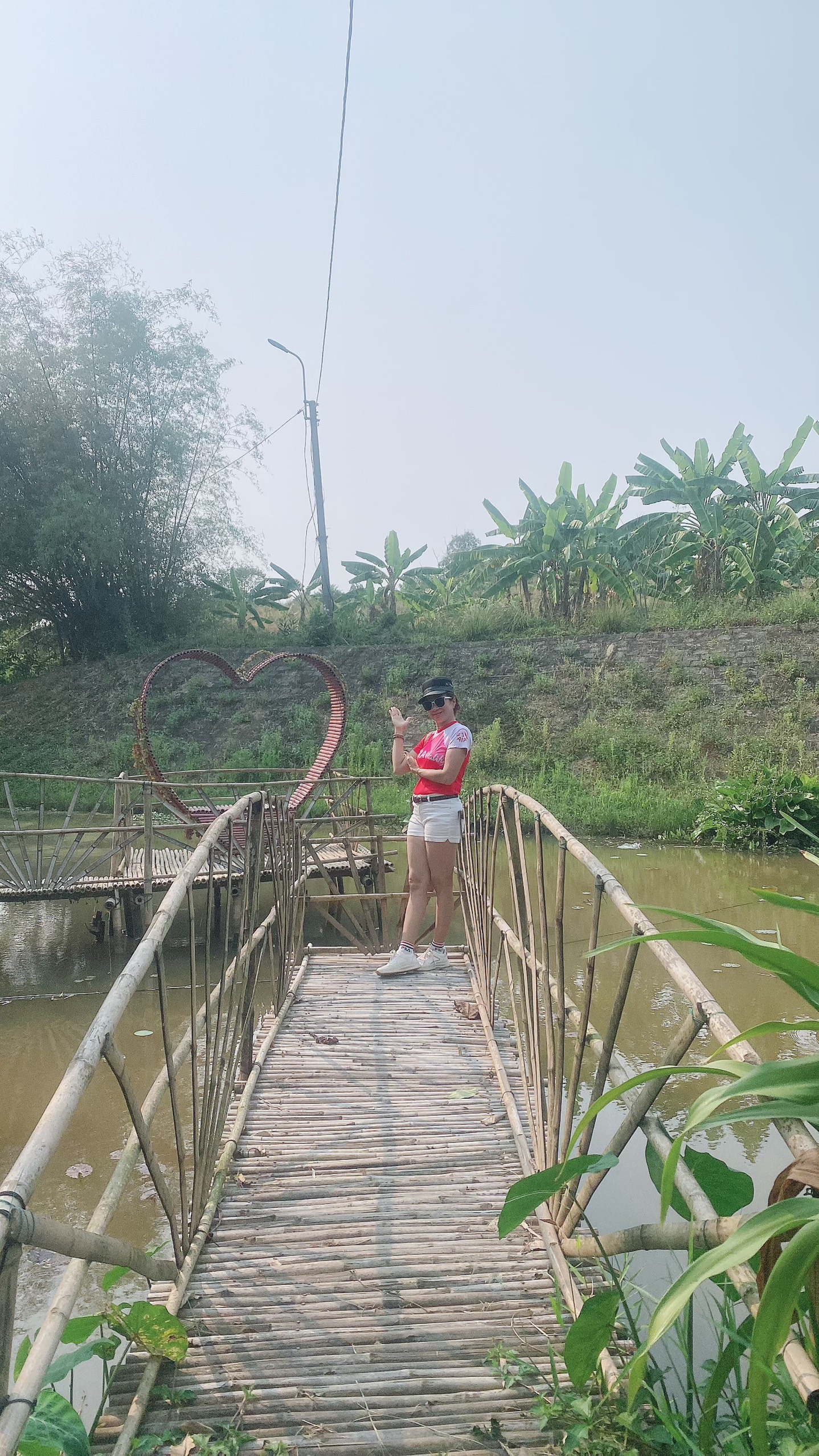 Tạo dáng bên cây cầu tre trúc mi ni