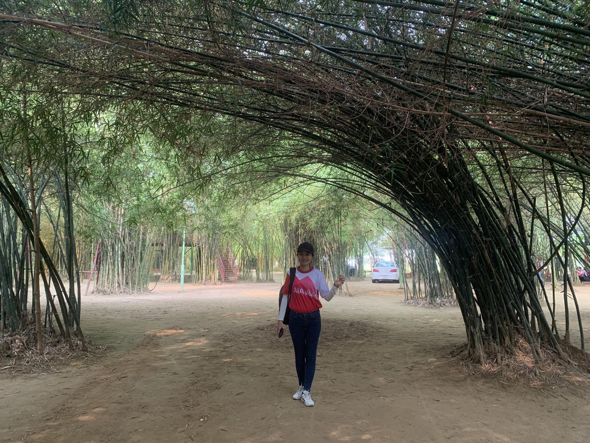 Vườn Trúc xanh ngắt với những cây cao chót vót, thân mảnh, nhỏ mi ni, bắt thành đường vòm cong. Đi từ xa nhìn vào nó đẹp như nửa vầng trăng ấy. Rất cuốn hút, hấp dẫn du khách, nhất là giới trẻ tìm đến dã ngoại.