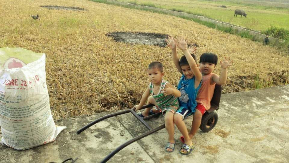 Và rồi xe đẩy mi ni ra đời, hạn chế sức gánh gồng, thêm vào đó ta bỏ vài bao lên xe và đẩy đi thật nhẹ nhàng, thoải mái hơn. Trông cho xe rãnh ran chút xíu, bọn nhỏ tụ tập ngồi lên nó, đứa kéo đứa ngồi, có khi không kéo được thì ngồi chơi vậy vì nó rất nặng, không phải xe đồ chơi của bọn trẻ mà chúng nó thích và mê lắm, lại tha hồ reo và vẫy tay la hét ầm lên.